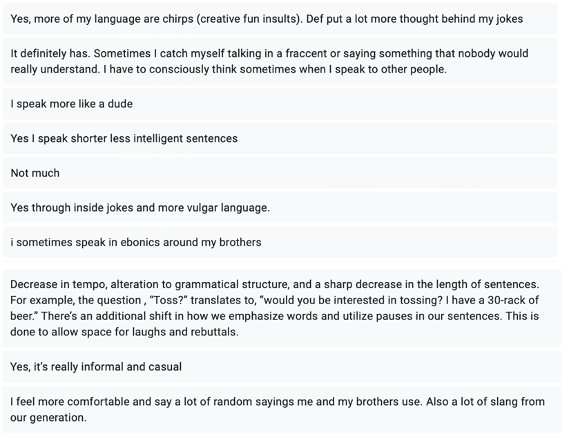 The observable communication and language aspects central to our study were word choice, tone, and emotional intensity. Reviews varied in their placement on the emotional scale, with some displaying stronger emotionality than others. Specific word choices often indicated whether a review was positive or negative, but the analysis also aimed to determine whether such language influenced perceptions of the professor’s gender. Beyond word choice, the tone of the review could shape participants’ impressions of the professor, potentially revealing underlying gender associations. This approach allowed us to compare how students interpreted emotional tone in reviews and whether certain linguistic patterns led them to associate a review with a specific gender.
