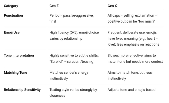 Digital Communication Cue Interpretation: Gen Z vs. Gen X